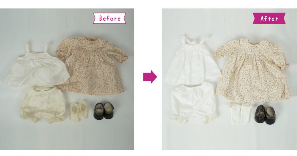 補修できない破れや傷みがない場合は、当院独自の方法でクリーニング・シミ抜きをして再生します。
