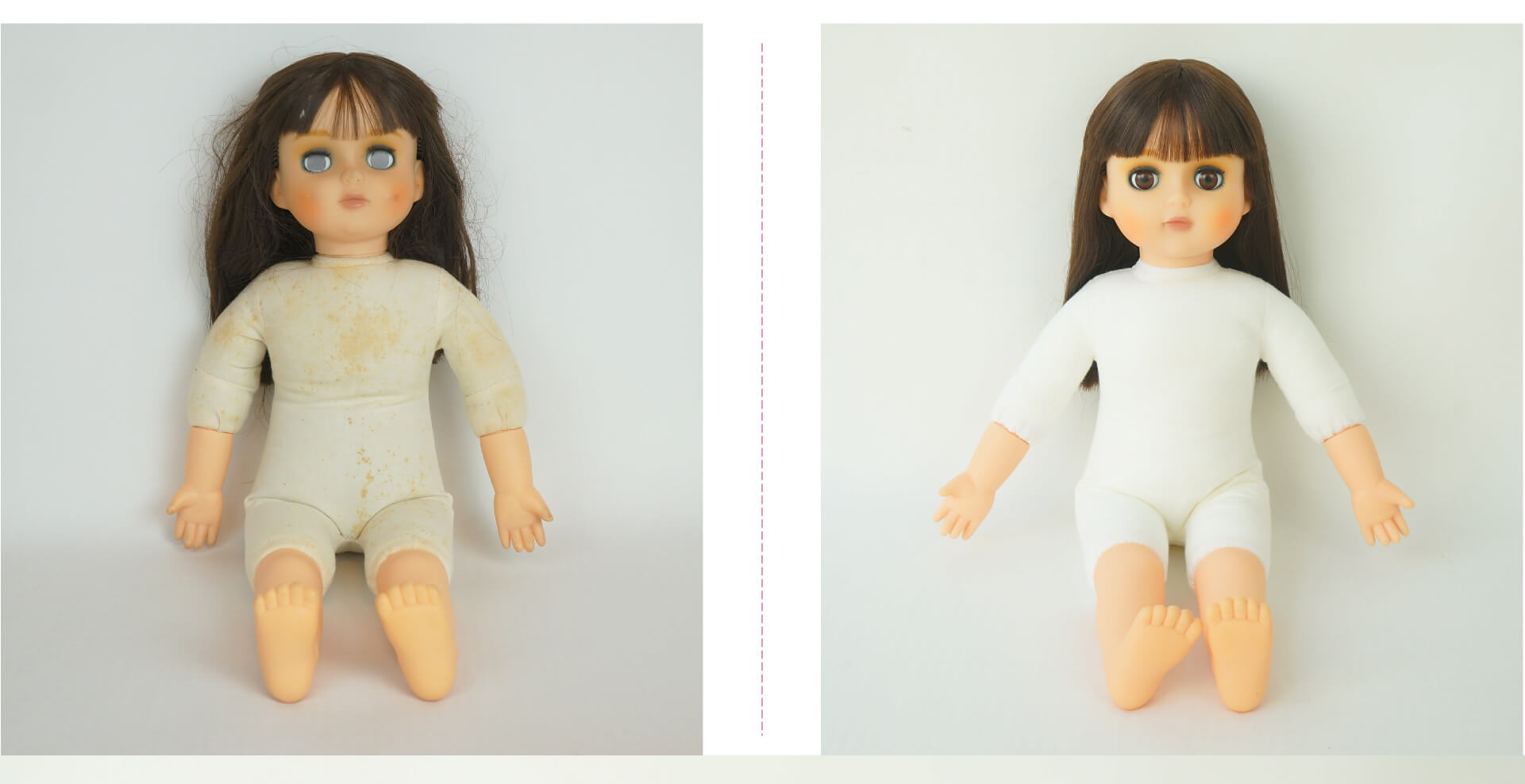 元のドレスをクリーニングして補修しました。とても良く似合っていますね。