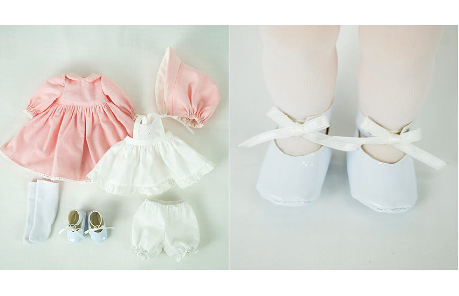 ピンクのワンピースとお揃いのボンネットとエプロンドレスを新調しました。