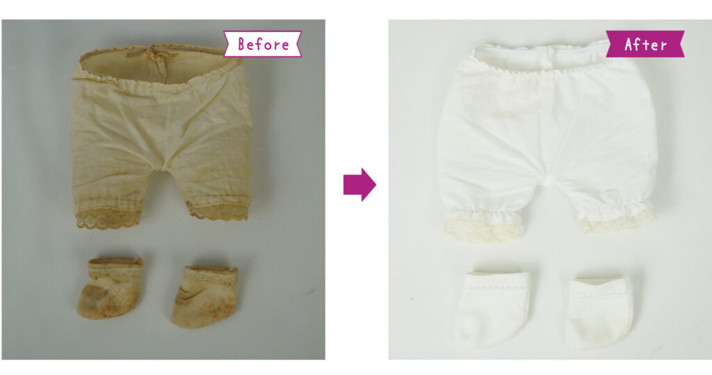 (*1)シミケアとは当院が開発したソフトビニールのお人形専用のシミ抜き剤です。