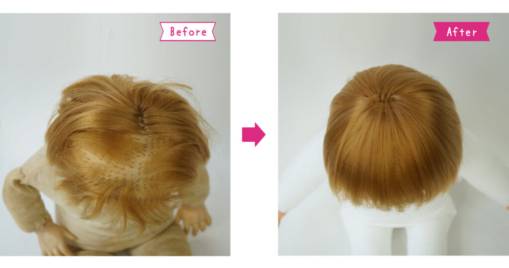 *お顔・手・ソフトビニール部分のクリーニング *髪の毛のシャンプー *髪の毛の増毛・セット *彩色直し *ボディの作り直し