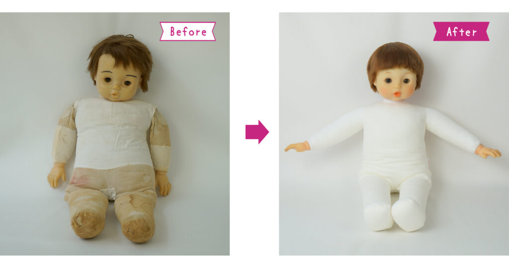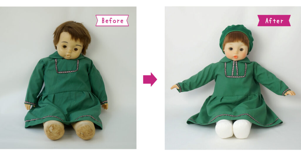 おメメも治って表情が明るくなりました。お手製のグリーンのお洋服が良く似合っていますね。