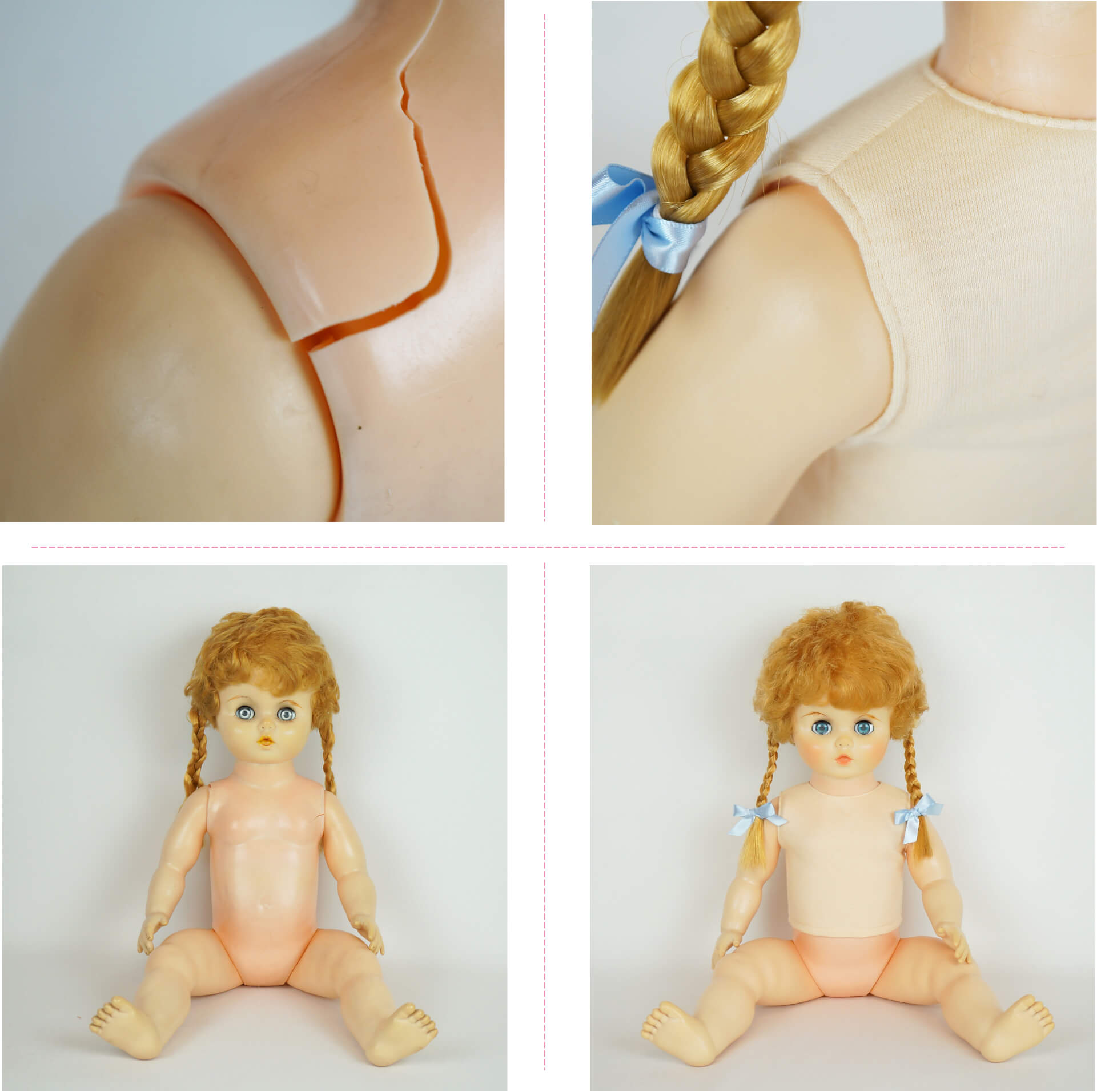*お顔と手足、ソフトビニールのクリーニング *眠り目の退色再生 *ボディのヒビ補修・保護の為のボディカバー制作 *髪の毛のシャンプー *髪のカール・三つ編みセット *退院セット