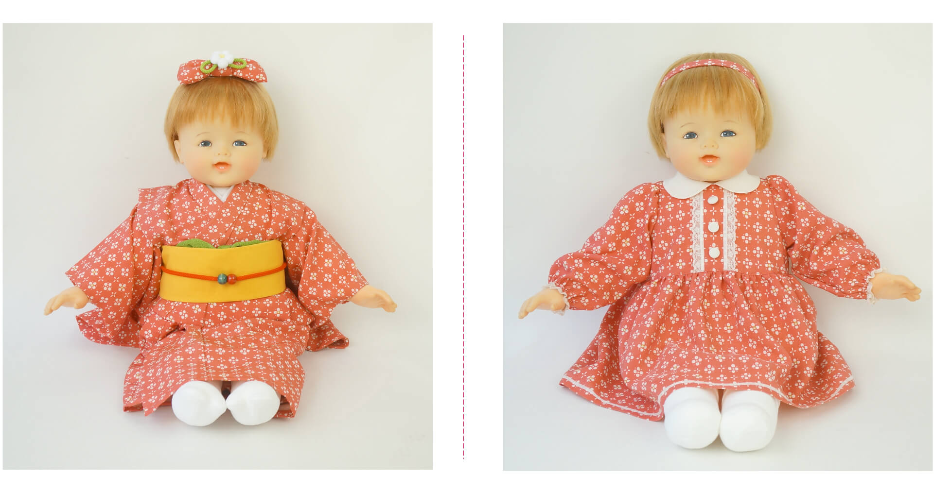 お母さまの想い出いっぱいの絹のお着物を解いて、お着物とお洋服をお誂えしました。