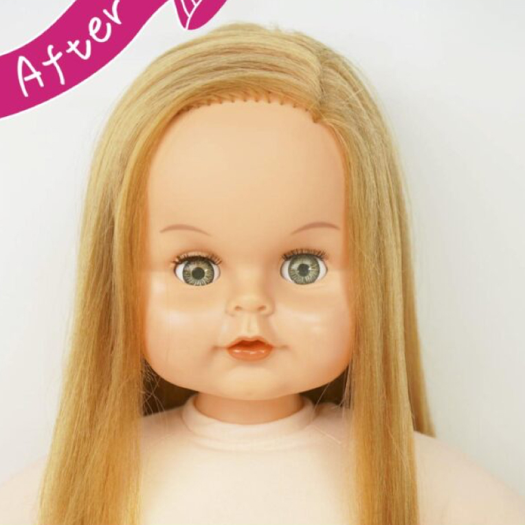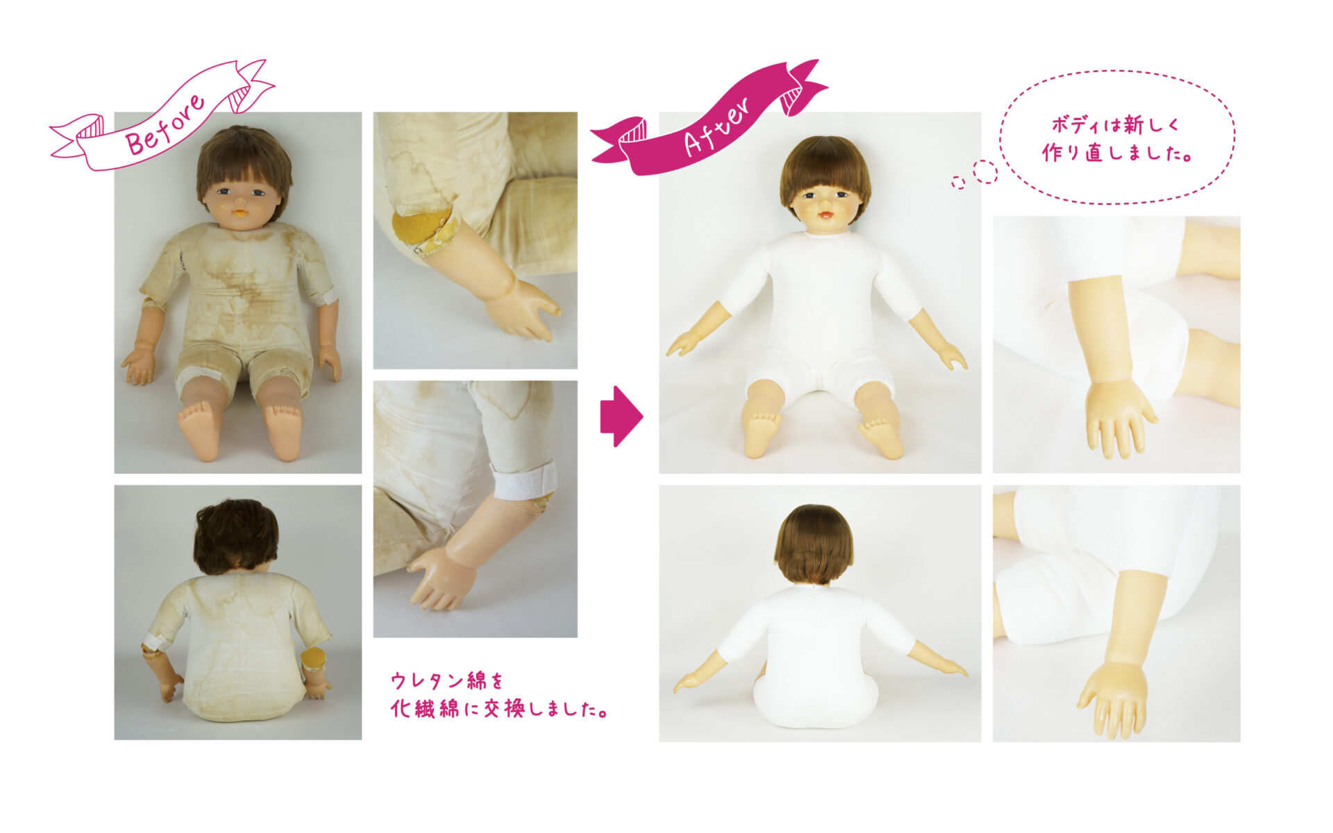 お顔のクリーニングをし、ほほ紅・唇の彩色を治しました。
